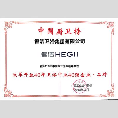獎(jiǎng) 項(xiàng):改革開放40年衛(wèi)浴行業(yè)40強(qiáng)企業(yè)·品牌